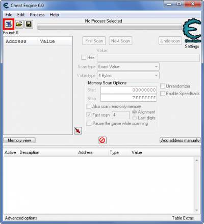 После запуска и выбора игры, программа в быстром режиме просканирует память и все файлы связанный с игрой, после будут найдены определенные значения. Cheat Engine 6.0 обладает специальными методами, которые могут почти в ста процентах случаев обмануть игру, причем даже если в самой игре нет числовых значений ( бывает часто, что жизни или патроны отображаются в графическом виде ). Cheat Engine справляется даже с играми, которые кодируют свои данные, в общем ей все по зубам, возможно пригодится.