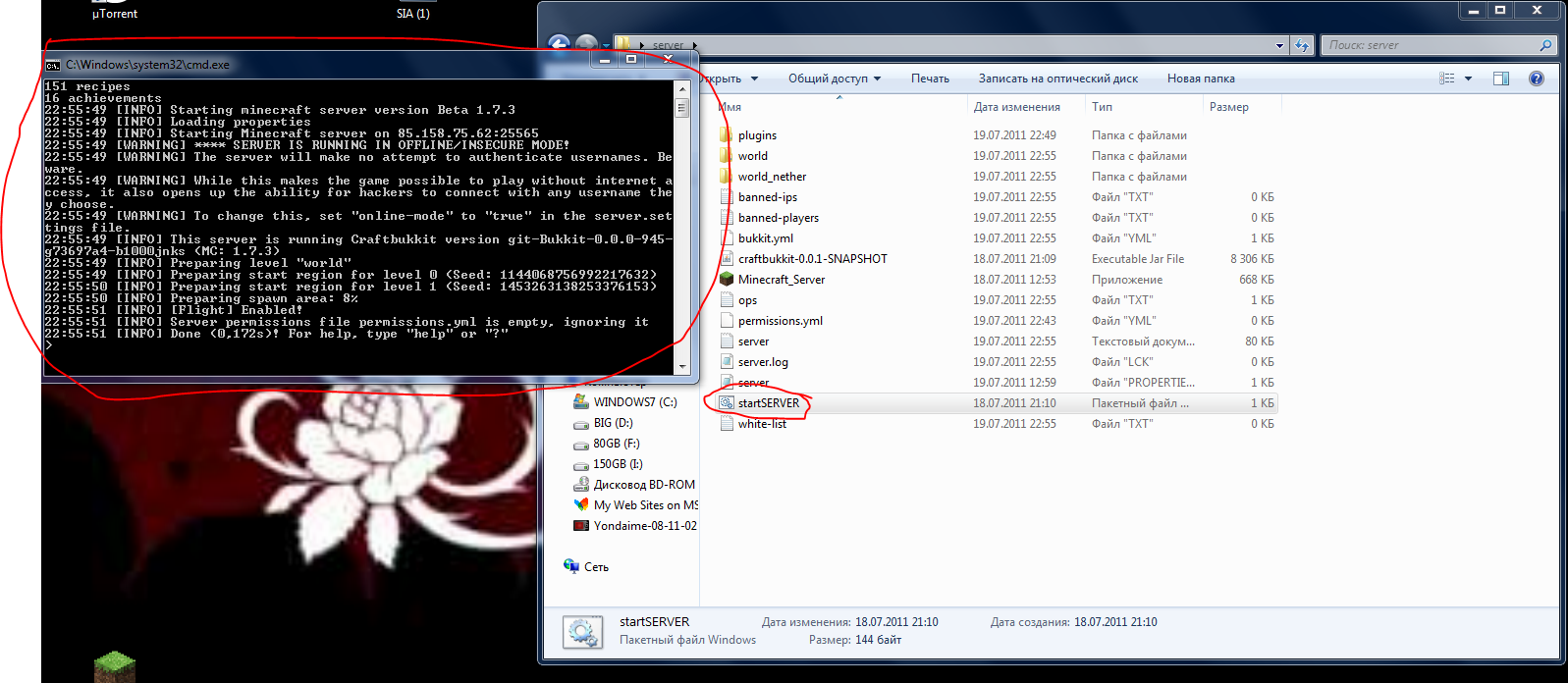 4.Сервер готов, теперь запускаем StartServer.bat